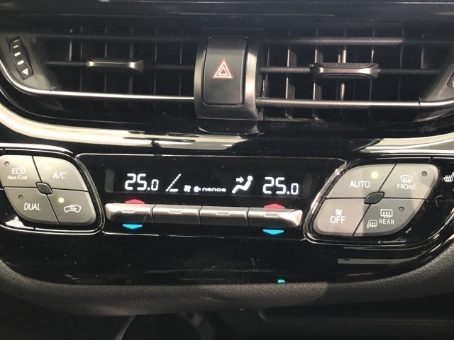 運転席、助手席別々に温度設定ができるデュアルエアコン装備です。男性が暑いと感じても、女性は寒いと感じる、そんな時の車内温度を別々に調節できるので、ストレスなくドライブをお楽しみいただけます。