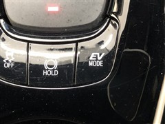 ハイブリッドならではの装備。EVスイッチを押すとモーターのみの走行ができますよ。モーターで駆動するのでガソリンエンジンと比べると静かなので、早朝や深夜など大きな音を出さずに運転できます。