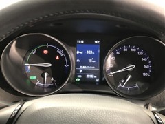 ハイブリッドならではの装備。EVスイッチを押すとモーターのみの走行ができますよ。モーターで駆動するのでガソリンエンジンと比べると静かなので、早朝や深夜など大きな音を出さずに運転できます。
