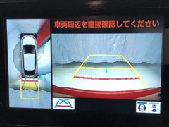 車の全周囲の画像が表示されます。運転席から見づらい個所なども、上空から見たような映像で確認できます。映像のきりかえも出来、後方確認だけでなく大変便利な機能です。