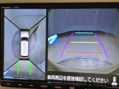 車の全周囲の画像が表示されます。運転席から見づらい個所なども、上空から見たような映像で確認できます。映像のきりかえも出来、後方確認だけでなく大変便利な機能です。