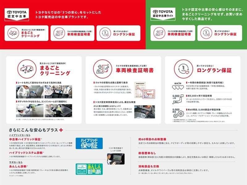 ※ 「車検整備付」の場合、車検の有効期限が切れているため、納車時までに、乗用車は24ヵ月、商用車などは12ヵ月定期点検整備を実施し、車検を取得して納車します(費用は支払総額に含む)。