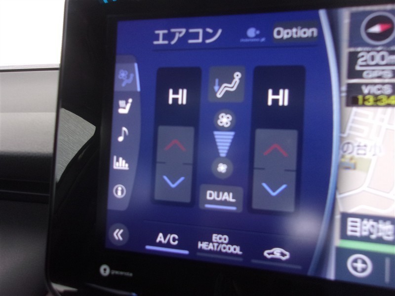 左右独立温度コントロールフルオートエアコンです。運転席、助手席それぞれで独立して温度設定ができます。