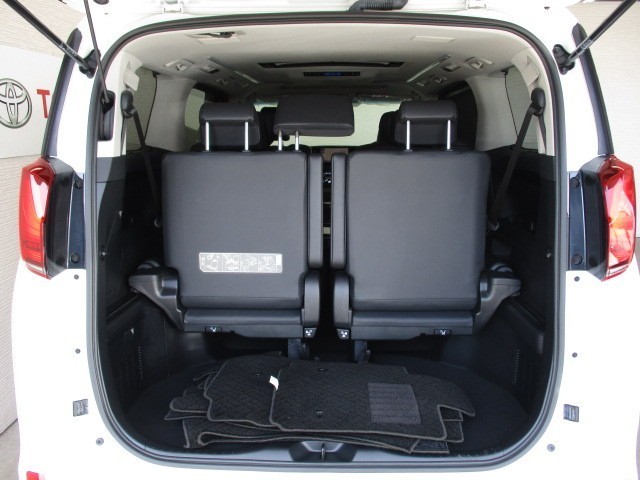 3列目シートは跳ね上げ式で折りたたみ可能です。キャンプ用品など大きな荷物もばっちり収納可能です!