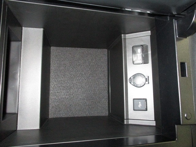 センターコンソールの扉を開けると小物入れ!USB外部入力端子、12V電源ソケット、1500Wコンセントがあります!