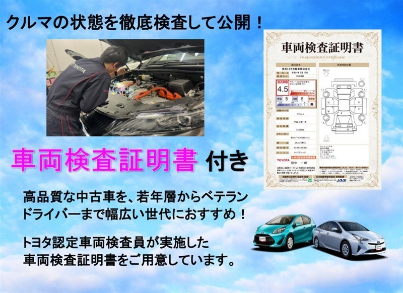 トヨタ自動車が認定した検査員が、厳正に検査した車両検査証明書を発行し、クルマに詳しくない方にも安心していただけるよう点数表記しております。