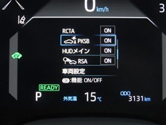 (ヘッドアップディスプレイ)フロントガラスに走行スピードが表示され、少ない視野移動で確認出来て便利です。