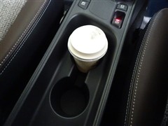 可倒式のリヤセンターアームレストは便利なカップホルダー付き。
