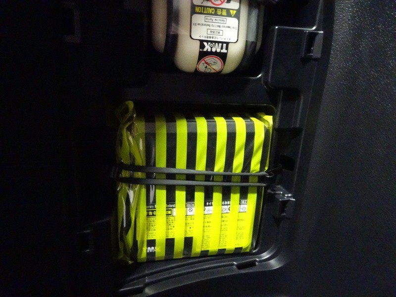 パンク修理キット付き。スペアタイヤの代わりにパンク修理キットが備え付けられています。