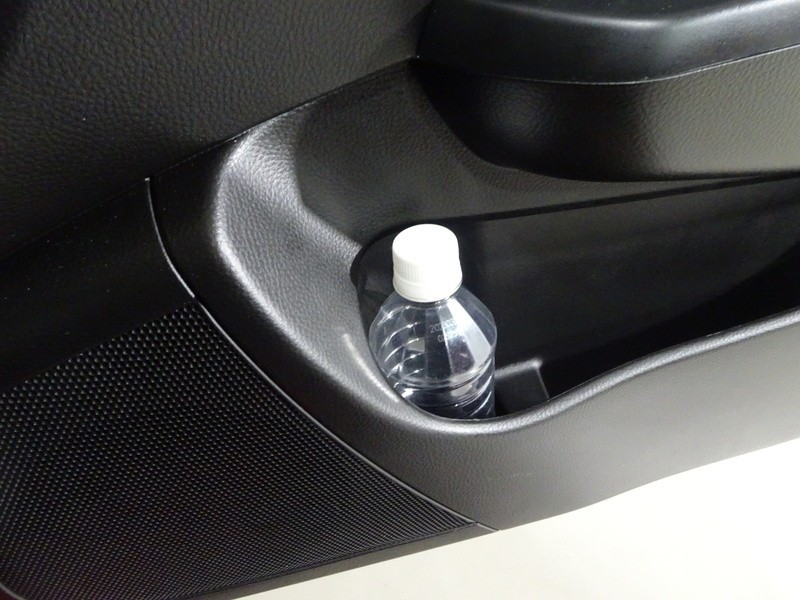 運転席ドアのドリンクホルダーと小物入れ。