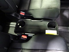 カップホルダー付きサイドテーブル。格納すると、サードシートへのウォークスルーも出来ます。