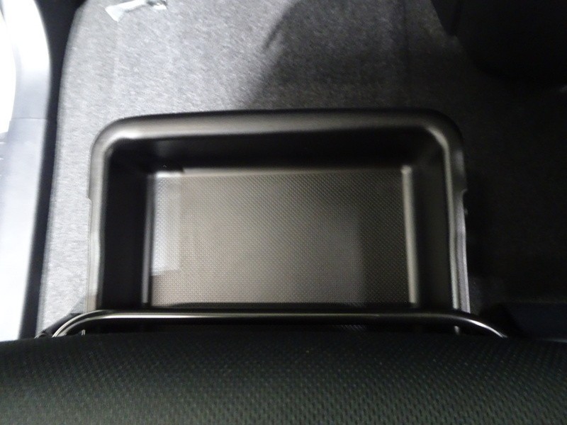 靴などを入れておくのに便利な助手席シート下の収納トレイ。