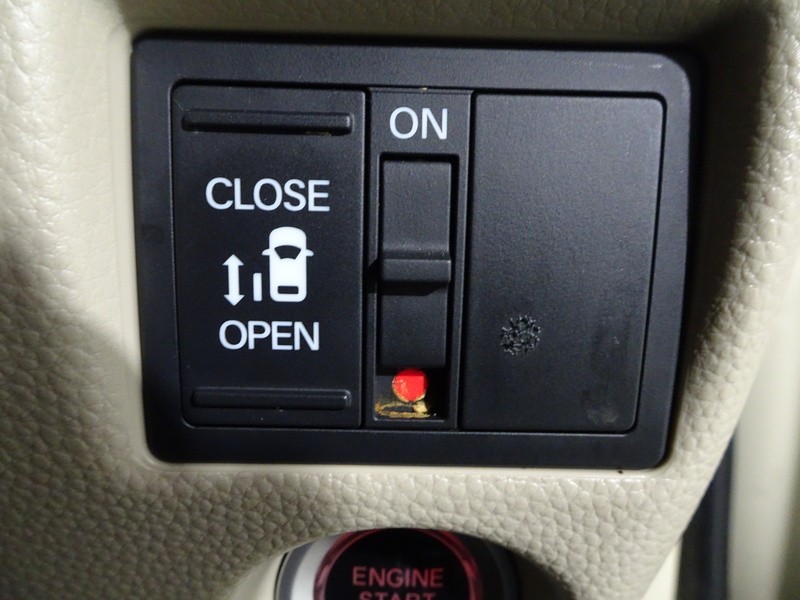 狭いスペースでも乗り降り楽々!お子様に安全な挟み込み防止機能付き!助手席側パワースライドドアの開閉スイッチ。