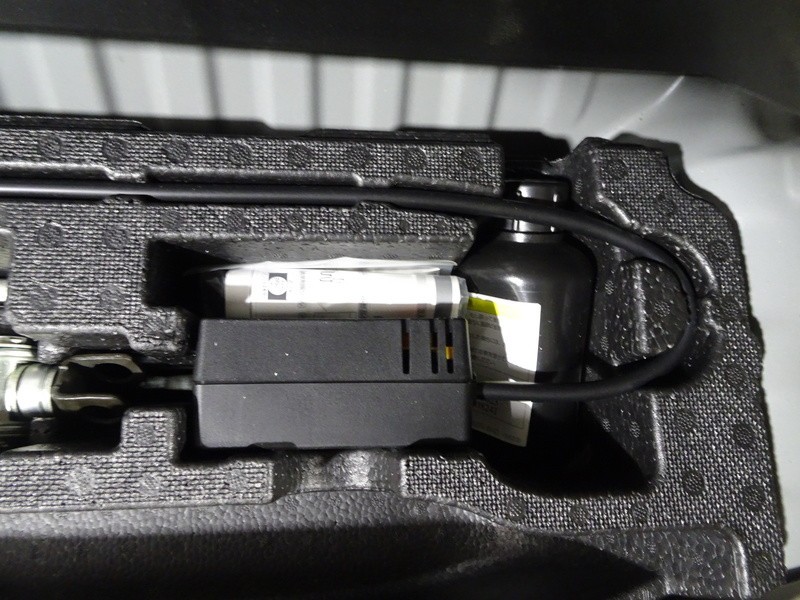 パンク修理キット付き。スペアタイヤの代わりにパンク修理キットが備え付けられています。