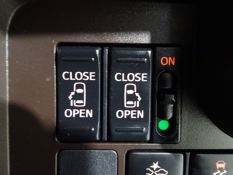 狭いスペースでも乗り降り楽々!お子様に安全な挟み込み防止機能付き!両側パワースライドドアの開閉スイッチ。