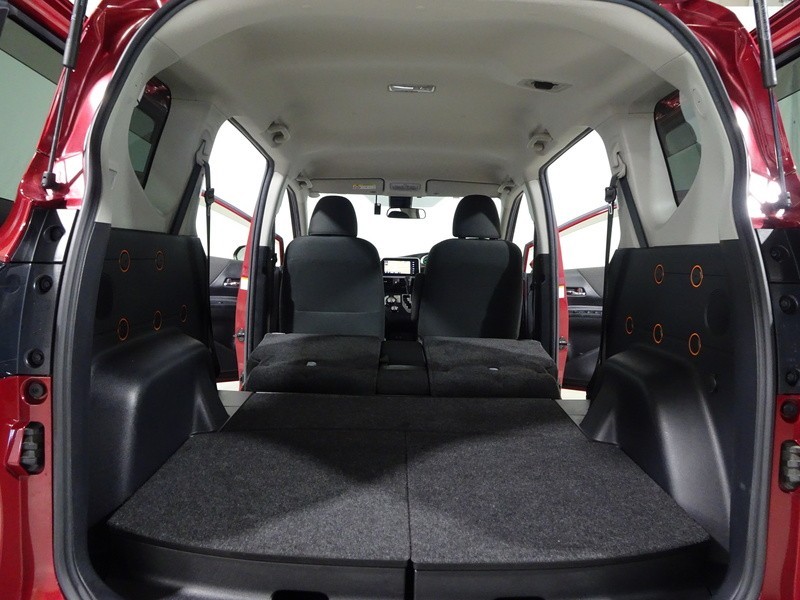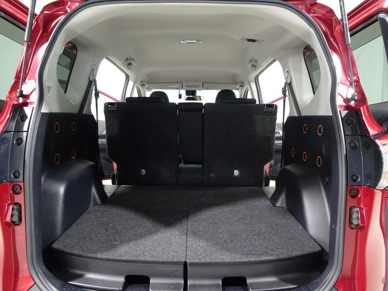 バックドアの開口が広く、荷物の積み下ろしがとても楽です。リヤシートを前に倒すと、さらに大容量のラゲージスペースに!