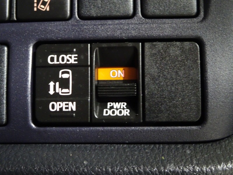 狭いスペースでも乗り降り楽々!お子様に安全な挟み込み防止機能付き!助手席側パワースライドドアの開閉スイッチ。
