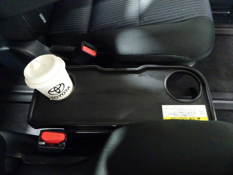カップホルダー付きサイドテーブル。格納すると、サードシートへのウォークスルーも出来ます。
