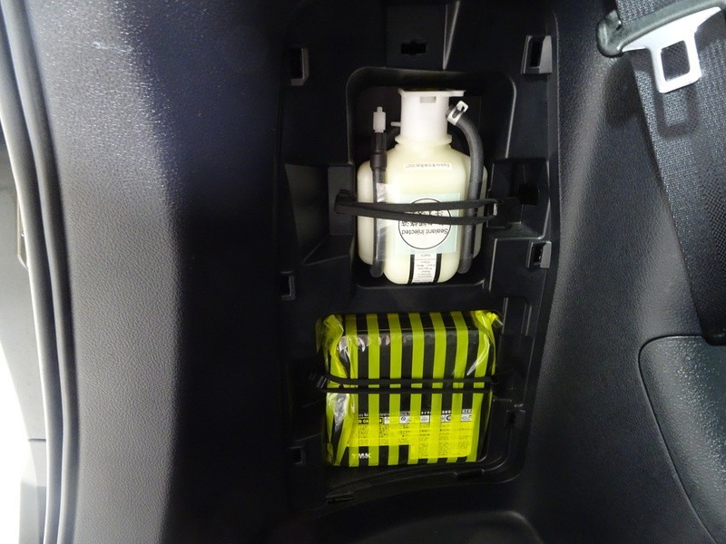 パンク修理キット付き。スペアタイヤの代わりにパンク修理キットが備え付けられています。