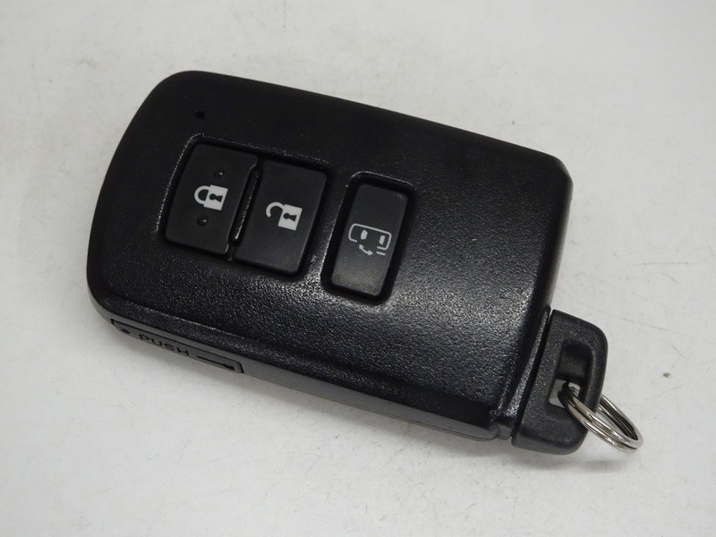 スマートキー。これを持っているだけで、ドアロックの開閉、スライドドアの開閉、エンジン始動がワンタッチ。
