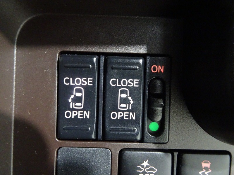 狭いスペースでも乗り降り楽々!お子様に安全な挟み込み防止機能付き!両側パワースライドドアの開閉スイッチ。