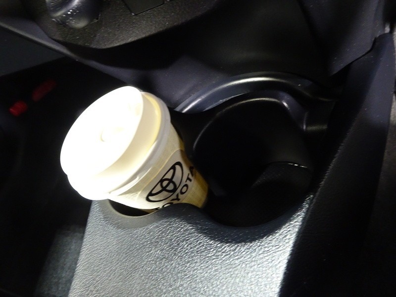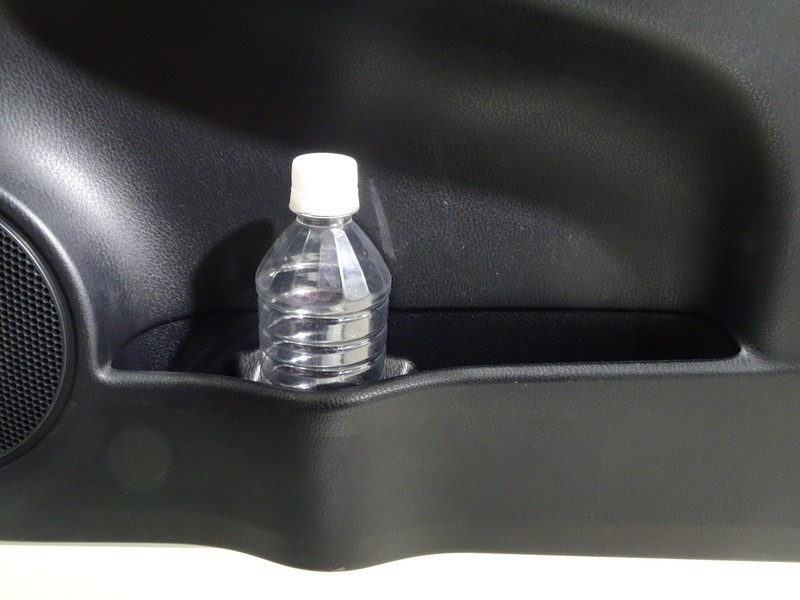 運転席ドアのドリンクホルダーと小物入れ。