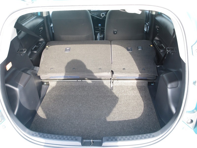 後席を倒してより大きなものや長さのある荷物もしっかりと積み込めます。