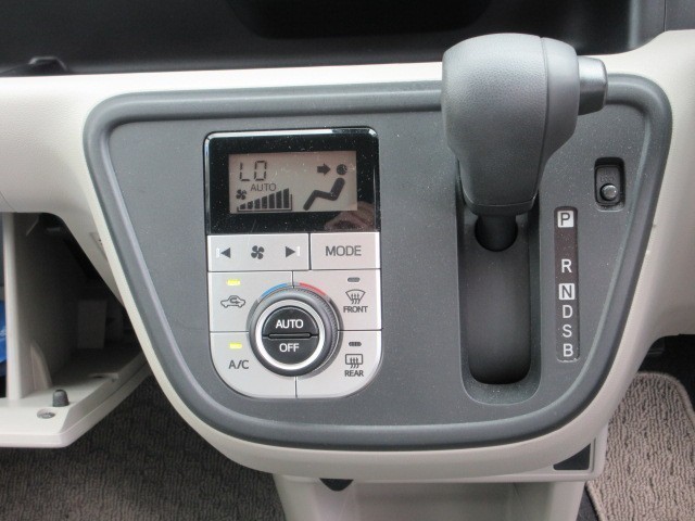 シフトレバーとエアコン操作パネル。オートエアコンです。