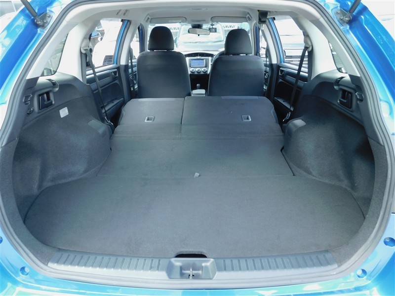 ラゲージ側面のレバーを引くだけでリヤシートがかんたんに倒れワイドなスペースになります
