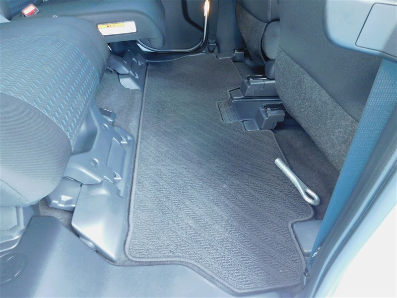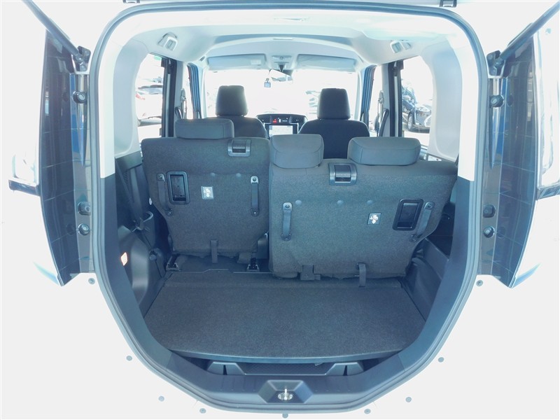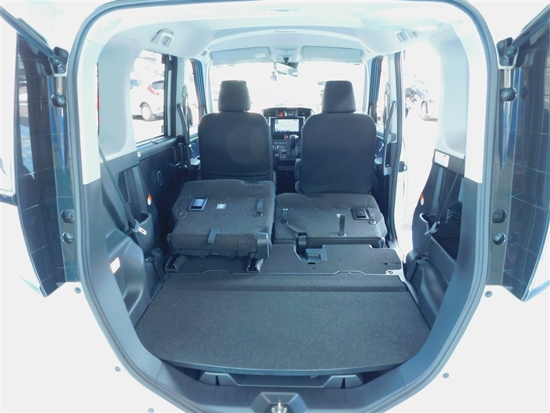 リヤシートを前方にダイブイン格納させるとフラットなフロアーの奥行きがひろがり大きな荷物や長い荷物まで積載可能です