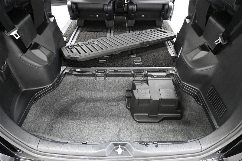 3列目シートは跳ね上げ式で折りたたみ可能です。キャンプ用品など大きな荷物もばっちり収納可能です!