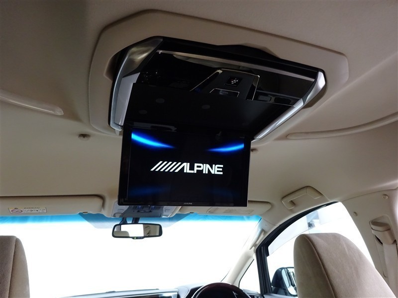 【後席モニター】後部座席の天井には後席モニターを装備!後部座席に座りながらTVやDVDの視聴が出来るので長時間のドライブが楽しくなります♪