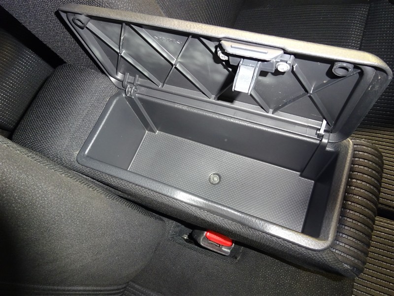 運転席と助手席の間のひじ掛けの中に小物を入れるスペースがあります!