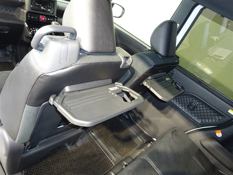 【格納式シートバックテーブル】フロントシートの後ろに折りたたみ式のテーブルが付いてます!物が落ちにくいふち高のテーブルはタブレットが立てかけられ、カップホルダーも備えています!