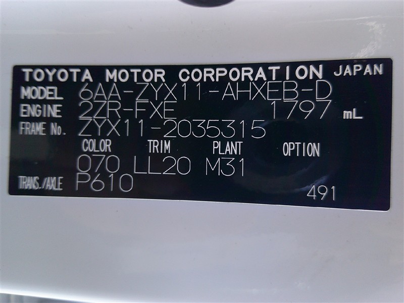 車両ナンバー: