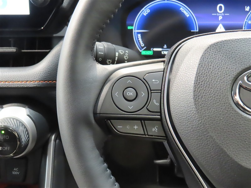 右側ステアリングスイッチ。ステアリングから手を離さずに操作できるので、運転に集中できます。