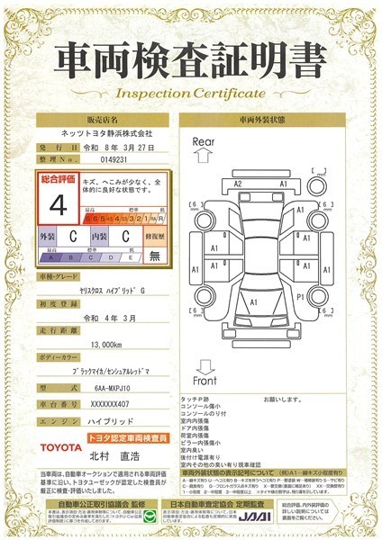 ※ 「修復歴あり」の場合、修復部位の詳細につきましては、販売店へお問い合わせください。