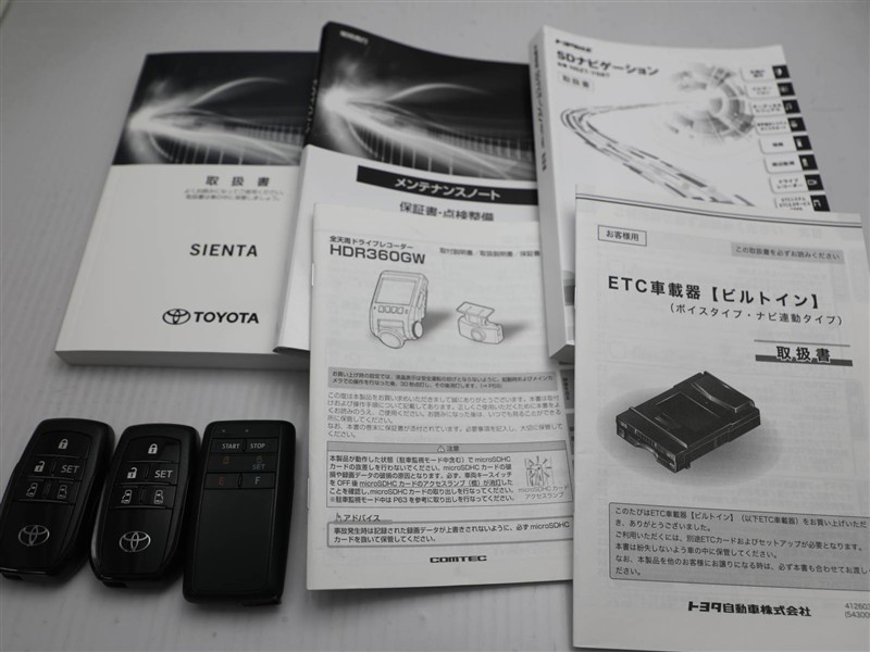 取説・メンテナンスノート・スマートキー・リモコンスターターの4点セットです。