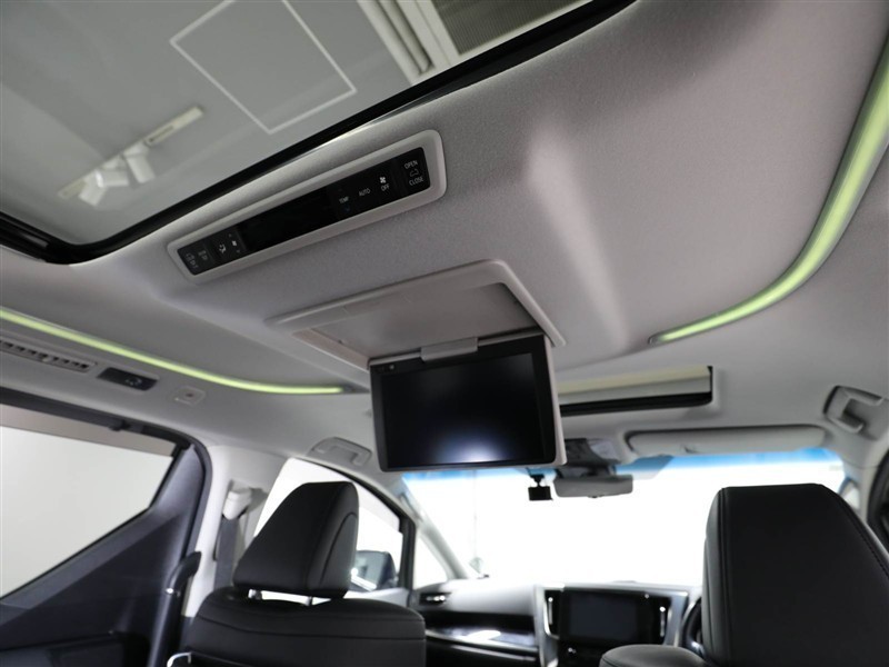天井に後席テレビが装備されているので、リヤ席からのナビ&TVが楽しめます。お子様も飽きない楽しいドライブになります♪室内に心地いい解放感を与えてくれるムーンルーフです。