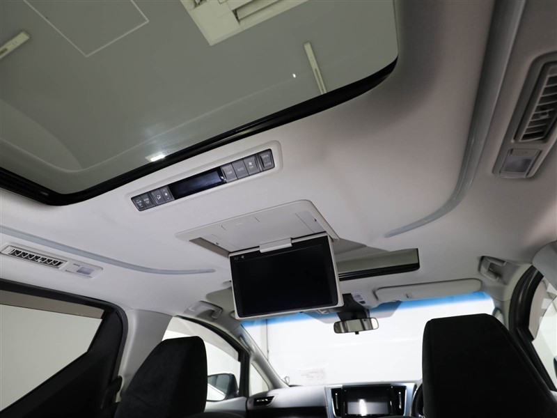 天井に後席テレビが装備されているので、リヤ席からのナビ&TVが楽しめます。お子様も飽きない楽しいドライブになります♪高級感たっぷりで開放感満載なムーンルーフ付きです♪