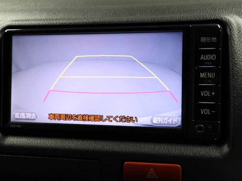 バックモニター装着車は後退時の強い味方です♪車庫入れや縦列駐車の際、後退操作の参考になるガイドラインをナビ画面に表示します。