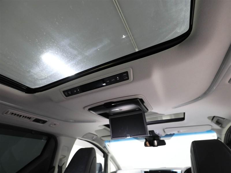 天井に後席テレビが装備されているので、リヤ席からのナビ&TVが楽しめます。お子様も飽きない楽しいドライブになります♪高級感たっぷりで開放感満載なムーンルーフ付きです♪