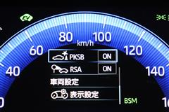車線変更時などに、ドアミラーでは確認しにくい後側方エリア(ブラインドスポット)に存在する車両をレーダーで検知。警告サインをドアミラー等に表示することで、運転者に注意喚起する機能。