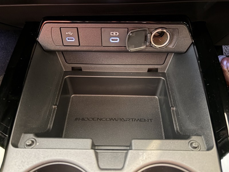シフトレバー操作部付近にはシガーソケット・充電ポート(2か所)あります。