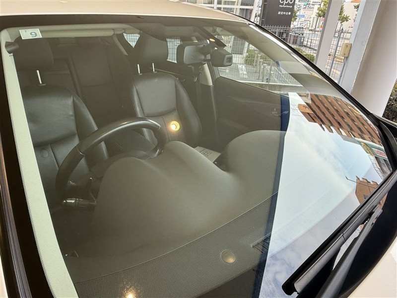フロントガラスには飛び石による小さな傷があります。