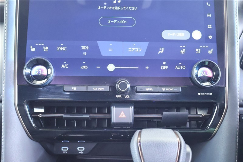 エアコン送風口下にスマホやiPodを直接カーオーディオに接続できるUSB端子や、充電用USB端子(タイプC)を装備しています。
