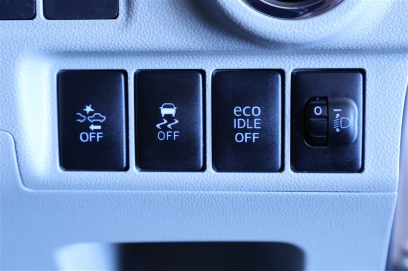 スマートアシスト、トラクションコントロール(横滑り防止機能)、アイドリングストップ等のスイッチが配置されています