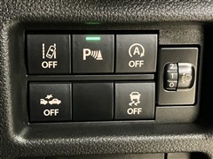 車線逸脱防止機能、コーナーセンサー、アイドリングストップ、デュアルカメラブレーキサポート、トラクションコントロール(横滑り防止機能)のスイッチが配置されています。