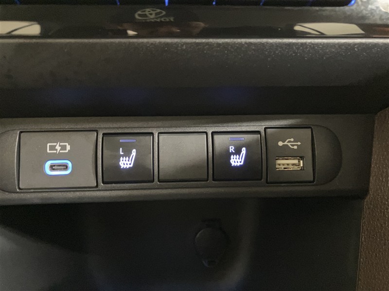 カメラのアングル切替スイッチ、ハンドルヒータースイッチ、オートマチックハイビームのスイッチが配置されてます。