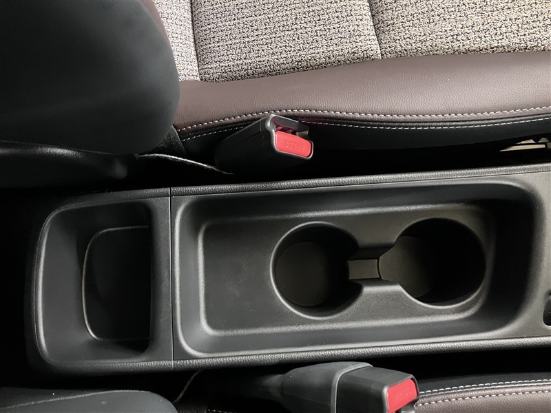 前席のシート間には、ドリンクホルダーと小物入れが備わっています。